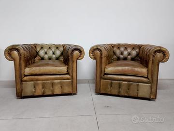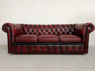 Divani e poltrone chesterfield ( chester ) inglesi originali nuovi e vintage importati direttamente dall' Inghilterra. Realizzati in pelle bovina di pieno fiore tamponata e stonalizzata a mano, presentano un design classico e iconico impreziosito dalla caratteristica lavorazione a capitonnè sullo schienale. I nostri punti vendita si trovano a Sora FR 03039 in Via Sferracavallo 23 e in Via Salita dei Pini 6. Questo è il listino prezzi dei chesterfield nuovi : poggiapiedi € 350,00 - poltrona singola club o Queen Anne € 1200,00 - divano 2 posti € 2000,00 - divano 3 posti € 2100,00.