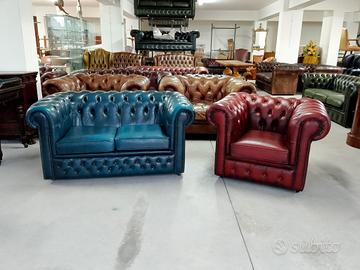 Divani e poltrone chesterfield ( chester ) inglesi originali vintage e nuovi importati direttamente dall ' Inghilterra. Chesterfield nuovi dal fascino British realizzati in pelle bovina di pieno fiore tamponata e stonalizzata a mano. I chesterfield vintage sono sottoposti ad accurati controlli nei nostri laboratori, con ripristino dell' imbottitura interna. I nostri punti vendita si trovano a Sora FR 03039 in Via Sferracavallo 23 e in Via Salita dei Pini 6. Si riceve su appuntamento dato che spesso siamo fuori sede.