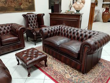 Divani e poltrone chesterfield ( chester ) inglesi originali vintage e nuovi importati direttamente dall' Inghilterra. Tutti gli articoli vintage sono sottoposti ad attenti controlli nei nostri laboratori, con ripristino dell' imbottitura interna. I chesterfield nuovi sono realizzati artigianalmente in Inghilterra con pelle bovina di pieno fiore tamponata e stonalizzata a mano. I nostri punti vendita si trovano a Sora Fr in Via Sferracavallo 23 e in Via Salita dei Pini 6. Si riceve su appuntamento dato che spesso siamo fuori sede. Questo è il listino prezzi dei chesterfield nuovi : poltrona singola club o Queen Anne € 1200,00 - divano 2 posti € 2000,00 - divano 3 posti € 2100,00.