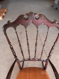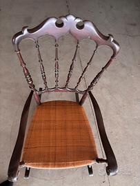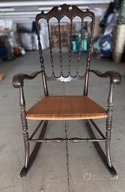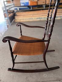 Sedia a dondolo ‘chiavarina’ anni 1950/1960 in buono stato, legno marrone scuro, seduta in paglierino. Misure : 100x60x80 cm