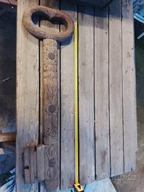 Si tratta di un oggetto decorativo in legno intagliato a mano a forma di chiave, un pezzo di origine nepalese.