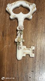 Chiave di porcellana Capodimonte bianca, con decorazioni floreali. Dimensioni come da foto. ottime condizioni senza scatola.