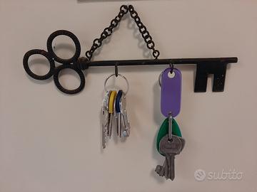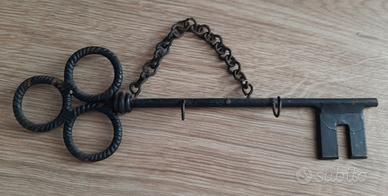 Un nostro vecchio zio si è fatto fare, tanti anni fa, questa bellissima chiave portachiavi in ferro battuto. Fatta a mano da un bravissimo fabbro artigiano È bella grande: lunga 25 cm. e larga 8 cm. La vendiamo perchéabbiamo venduto la casa in montagna.