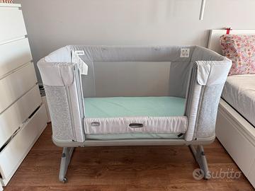 next to me forever usata pochissimo perché mio figlio preferisce il lettone 😅 prodotto come nuovo se non un piccolo difetto che non compromette l’utilizzo in corrispondenza della zip della spondina mobile. descrizione articolo: Una soluzione unica dalla nascita fino a 4 anni con 3 diverse funzionalità : lettino co-sleeping, lettino tradizionale e letto a pavimento. Cosleeping anche oltre i 6 mesi: Chicco Next2Me Forever ti consente di godere dei benefici del cosleeping più a lungo di una culla tradizionale. Lettino a terra di ispirazione Montessoriana: dai 18/24 mesi è possibile rimuovere le gambe e aprire completamente una delle sponde per lasciare il bambino libero di entrare ed uscire Sistema brevettato della barriera: meccanismo di sicurezza che impedisce di mantenere la barriera aperta se il prodotto non è agganciato correttamente al letto dei genitori. Materasso dalla forma dedicata per adattarsi perfettamente alla struttura del lettino. Grazie alla sua superficie rigida sostiene correttamente il bambino per tutta la durata di utilizzo. Massima flessibilità di utilizzo: sei libero di decidere se e quando passare da una configurazione all'altra, senza vincoli di tempo, così da assecondare le esigenze del bambino.
