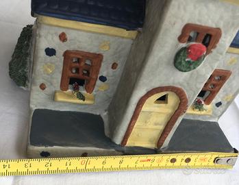 Bellissima Chiesetta con campanile, è in porcellana, dipinta a mano, colori vivaci; ha buchi per far passare una lucetta con cui illuminare l’interno (luce non inclusa); quando è illuminata si vedono le luci alle porte e finestre. Una favola!