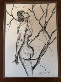 Corpi Scomposti “Il Ramo”, facente parte di una serie unica di Disegni a China su Cartoncino Winsor A4 220g realizzato a mano libera da Roberto Cafarotti