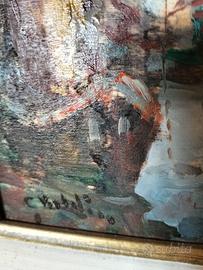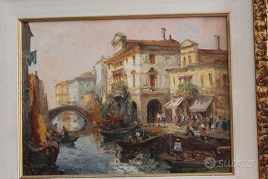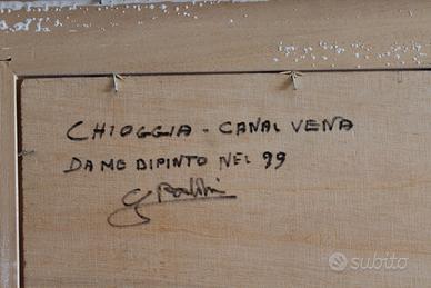 Dipinto di G. Baldin del 1999 (olio su tavola) raffigurante una veduta del Canal Vena di Chioggia. Splendida cornice lavorata con predominanza colore oro. Dimensioni del quadro cm. 65x55 – dipinto cm. 40x30.