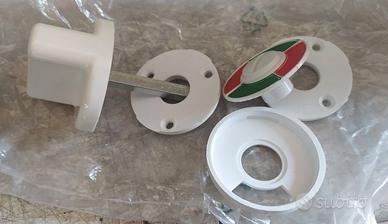 chiusura per porta bagno con indicazione libero-occupato, nuova, in plastica bianca con barretta in acciaio