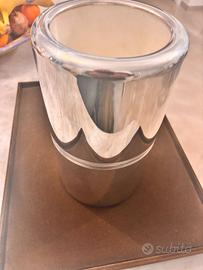 Raffrescatore per vino o acqua nella linea Aria . Altezza 23 cm Diametro 9,5 cm. Interno o 12,5 esterno. La glacette ha una rottura ma non e' stato mai usato, si presenta lucido e senza graffi. Il prezzo tiene conto del problema visibile nelle ultime 3 foto. Può essere ancora presentato a tavola perché non pregiudica il suo uso. Disponibile scatola originale!!