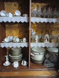 Cristalliera tavolo con marmo rosso specchio sedie piatti bicchieri tazze