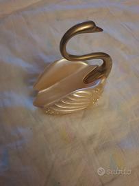 Vendo elegante soprammobile a forma di cigno, perfetto per arredare casa con stile. Realizzato con finitura lucida in ottone, arricchito da piccoli dettagli brillanti che lo rendono raffinato e luminoso. Ideale per soggiorno, camera da letto o come idea regalo. Dimensioni 13x12x8 cm Ritiro a mano a Trieste o spedibile. Vendo per sgombero dei mobili, visibili qui su subito dal mio profilo. NO PERDITEMPO