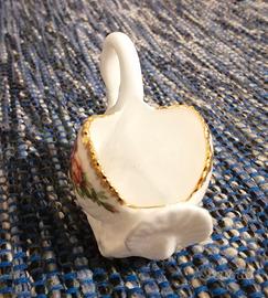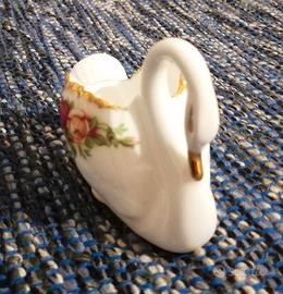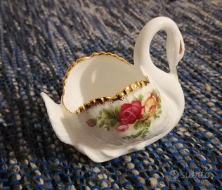 Grazioso cigno-contenitore degli anni'80, in porcellana inglese Bone China a marchio Royal Albert. Misure: lunghezza cm 8, altezza cm 7, ampiezza cm 5. Perfette condizioni.