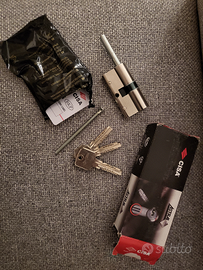 Causa incompatibilità con la serratura di casa vendo nuovo cilindro Cisa Astral S dimensioni 30-30 completo di 3 chiavi, scheda per duplicati chiavi e con predisposizione per pomolo. Tale predisposizione è stata ridotta a lunghezza 40 mm dal corpo del cilindro, rispetto alla lunghezza originale di fabbrica. La busta con le chiavi l'ho dovuta aprire per provare il cilindro montato ma questo non è mai stato usato.