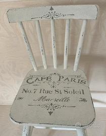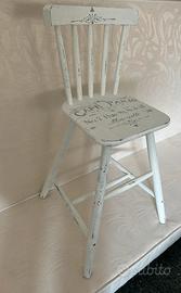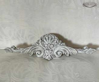 Fregio in legno Vintage e sgabello in legno dipinti e decorati a mano in stile Shabby Chic.