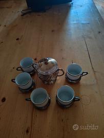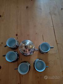 Cinque tazzine più zucchiera in peltro