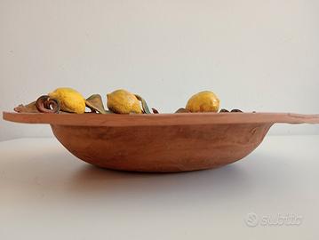 Bellissima ciotola in ceramica con motivi di limoni in rilievo della famosa ceramista Elisa Messina di Monreale. Dimensioni: 35x35