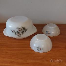 Pirofila con fiori decorativi e coperchio e 2 ciotoline abbinate in ottime condizioni Per ulteriori foto o informazioni non esitate a contattarmi!