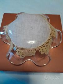 Originale ciotola in plexiglas. All interno è stato fuso un centro in puncetto valsesiano. Regalo particolare