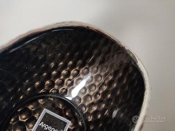 Ciotola Doge/Pochette, piccola. Rivestita in argento, interno in vetro color bronzo. Misure: 11*5,5 cm.