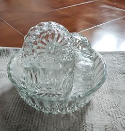 Ciotola grande con 8 ciotole piccole per macedonia o per gelato, in vetro cristallo, anni 80, perfette.
