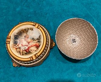 Posacenere in porcellana con decorazione in stile Capodimonte più ciotola in vetro con rivestimento in argento Argenesi modello diamante