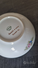 Si tratta di una ciotola in ceramica Arzberg, una prestigiosa marca tedesca famosa per la qualità e l’eleganza delle sue porcellane. La ciotola ha un diametro di 15,7 cm ed è decorata a mano con motivi floreali e profili in oro.