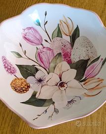 Vendo, per inutilizzo, ciotola fiori in ceramica 21,5x7 cm. Presenta nella parte di appoggio, come da foto, piccola usura. L' articolo si presenta in perfette condizioni, no scheggiato, no lineato.