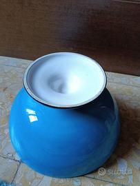 Vendo ciotola azzurra con base rialzata nera in ceramica, adatta a portare frutta, oggetti di qualsiasi tipo, svuotatasche o anche come oggetto decorativo. Ottimo stato. Ritiro a mano