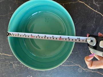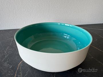 Ciotola in porcellana color verde acqua con coperchio in vetro