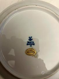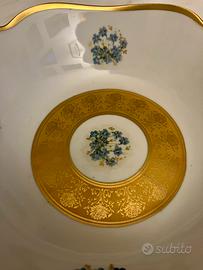 Decorazione: Motivi floreali azzurri (tipo nontiscordardimé) e fascia dorata centrale.