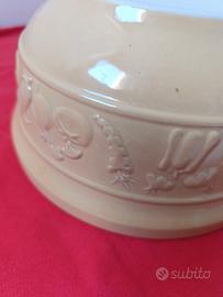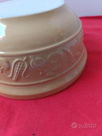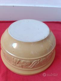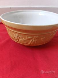 Ciotola Mason Cash dm 20,5 ceramica alta qualità, resistente alle scheggiature, ideale per impastare, con disegni di vegetali in rilievo, colori senape e bianco all' interno.