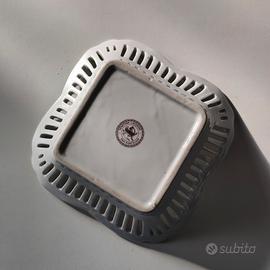 ciotola o piccolo vassoio in porcellana traforata con decoro floreale e bordi dorati, marchiata Venetian Lagoon – Fine Porcelain, produzione moderna di importazione orientale/italiana