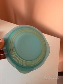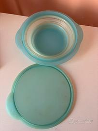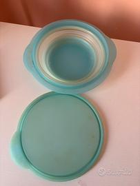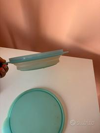 Ciotola pieghevole Tupperware linea Mini-Max, colore azzurro/turchese, in ottime condizioni. Pratica e salvaspazio: si appiattisce completamente quando non in uso e può essere regolata a diverse altezze in base alla quantità di cibo. Perfetta per organizzare la cucina o da portare fuori casa (lavoro, picnic, viaggio). Realizzata in materiale flessibile con coperchio rigido a chiusura ermetica, mantiene gli alimenti freschi ed evita fuoriuscite. - Condizioni: ottime, usata pochissimo - Ideale per: trasporto cibo, meal prep, campeggio - Facile da pulire e resistente