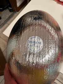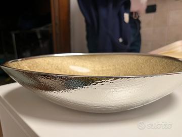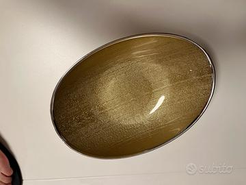 Ciotola ovale placcata argento. Interno smaltata (vetrificata) color oro Peso 900gr