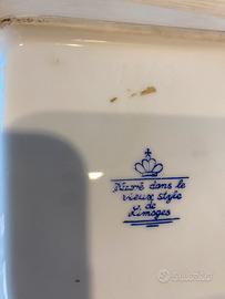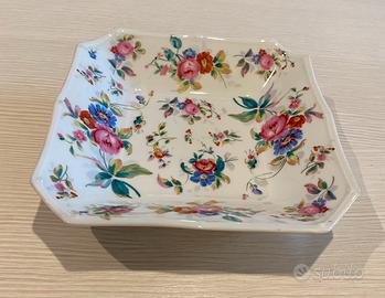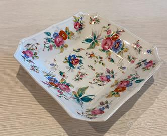 Ciotola quadrata in porcellana Limoges, vintage in ottime condizioni, motivo floreale e bordi lavorati, misure 15 x 15 cm