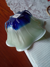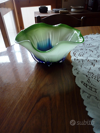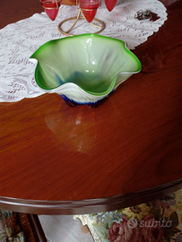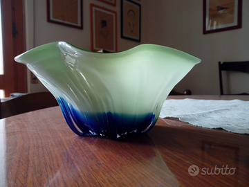Bellissima ciotola in vetro colorato, si presta a vari usi, da svuotatasche a portafrutta, ha un diametro di cm 22 ed è alta cm 10 . È nuovo, non usato, con la sua scatola.