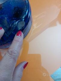 Ciotola vuota tasche in vetro murano di Barbini di colore blu con particolari bolle d'aria che lo rendono unico. Presenta una scalfitura come evidenziato in foto. L'oggetto è numerato V105