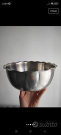 Set di due ciotole di acciaio inox 18/10 marca Rostfrei diametro 21cm e altezza 9cm. Utilizzate, quindi l'acciaio si presenta graffiato, ma non hanno altre imperfezioni.