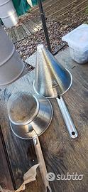 Ciotole bastardelle acciaio inox per bar ristoranti pasticcerie Diverse dinensioni totale 13pezzi Diametro 28 2 pezzi Diametro32 2 pezzi Diametro 32 con manici 1 pezzo Diametro 43 1 pezzo Diametro 38 1 pezzo Diametro 36 1 pezzo Diametro 22 1 pezzo Diametro 20 2 pezzi Colino cinese maglia stretta 1 pezzo Colino conico 1 pezzo 180 euro ritiro in BLOCCO a Milano Disponibilità di altro materiale per bar ristoranti, come lampade , registratore di cassa telematico, mestoli cucchiai da cucina vassoi in acciaio, teglie in alluminio impianto audio con casse brocche in vetro vasetti in vetro. Bar ristoranti Cucina industriale Tavola calda Pub Ristorazione Teglie forno, vassoi alluminio Utensili acciaio Cucina Attrezzi Materiale cucina ristorante Pasticceria