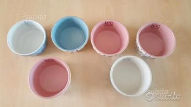 Vendo sei ciotole in ceramica per gelato. Diametro 11 cm e altezza 6 cm.