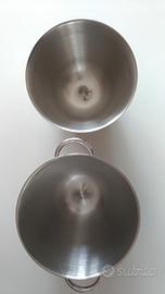 Ciotole in acciaio inox originali Kenwood Per Kenwood Chef/Major Titanium. Misure ciotole: 1-Diametro superiore esterno 23,7 cm Diametro inferiore esterno 14,5 cm Altezza 22 cm 2-Diametro superiore esterno 23,3 cm Diametro inferiore esterno 14 cm Altezza 17 cm