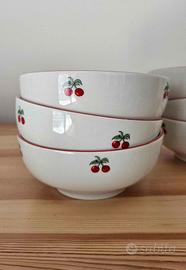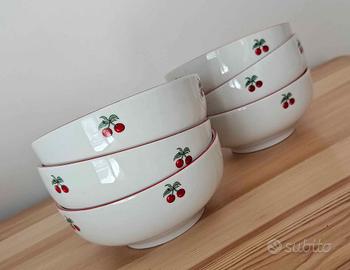 6 ciotole in ceramica marca Richard Ginori con decorazioni di ciliegie. H5,5x13