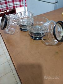 6 ciotole per macedonia vintage in cristallo e base silver