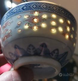 La particolarità di queste ciotole è che la ceramica è attraversata dalla luce in corrispondenza dei chicchi di riso.