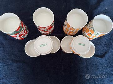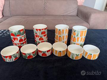 18 ciotole x macedonia o x gelato nuove mai usate 9 bianche con disegno arancione 9 bianche con disehno rosso