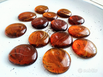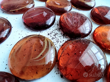 Ciottoli pebbles pepite gemme decorative di vetro trasparente colore ambra con striature bianche - 380 gr (14 pezzi).