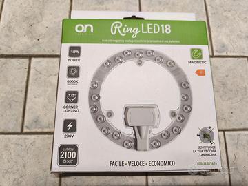 Circolina LED con alimentatore integrato e base metallica per favorire la dissipazione del calore. Alla base troviamo una serie di magneti utili per l'installazione diretta su plafoniera in ferro senza necessità di forare.
