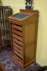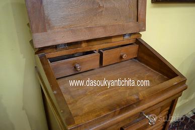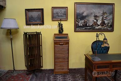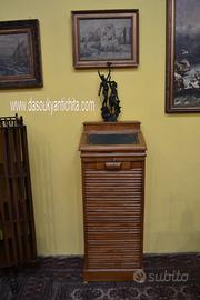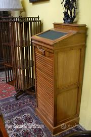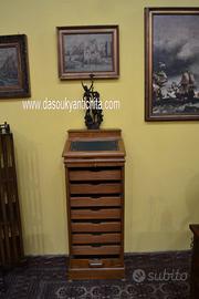 Schedario-classificatore in legno di rovere stile inglese, piano superiore con vano portapenne e un elegante piano di scrittura a ribalta rifinito in ecopelle verde, dove all’interno si celano due cassetti. Al piano inferiore una serrandina con chiave , dove all’interno troviamo sette cassetti portadocumenti estraibili delle dimensioni di larghezza 36.5 cm. x profondità 26.5 cm. x altezza 6.5 cm, . Di facile collocazione per le dimensioni contenute e per il suo intramontabile stile adatto sia nell’arredamento antico che moderno Piccolo difetto sul piano della pelle come da foto . Dimensoni : Larghezza 46 cm. Profondità 40 cm. Altezza 120 cm. Chi fosse interessato a una visita virtuale della nostra galleria può accedere ai motori di ricerca, inserendo il nominativo " Dasouky antichita' " Per informazioni contattateci ai seguenti numeri Cell. Cell. EURO 340,00 SPEDIZIONE GRATUITA IN TUTTA ITALIA CON CORRIERE ESPRESSO