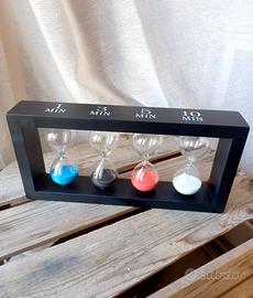 Vendo clessidra con 4 tempi diversi: 1, 3, 5 e 10 minuti, montate su pratica struttura girevole in plastica.