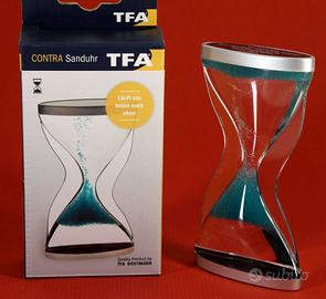 Una clessidra alternativa! Le sferette si muovono dal basso verso l'alto in circa 10 minuti. Il corpo è in vetro acrilico e le sfere sono in plastica verde. Misura: alta 12 cm, larga 6,5 cm. Peso: 80 gr. Condizioni: nuova, mai usata, in confezione originale con istruzioni. Non necessita di batterie. Non adatta a bambini da 0 a 3 anni.